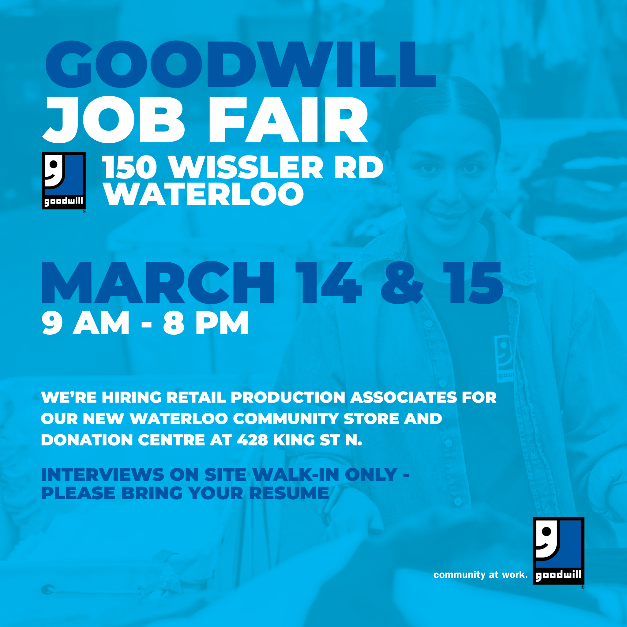 Goodwill Job Fair in Waterloo on March 14th & 15th. Goodwill , The purpose of this workshop is.